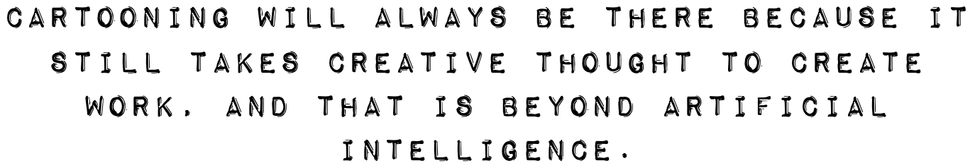 That is when a new trusted information medium will step in to fill that void. What it will be or what form it will take is unknown at this point, but the first to figure that out will make the most money. As a novice, your success depends on recognizing changes in technologies and how the public interacts with the media. Adaptation and a willingness to change help your growth. Cartooning will always be there because it still takes creative thought to create work, and that is beyond artificial intelligence. Also, what is often overlooked is the fact that AI cannot copyright its own work or enter contractional agreements to sell said copyrights. So, anything that AI creates can be “borrowed” and reused with no compensation to developers.