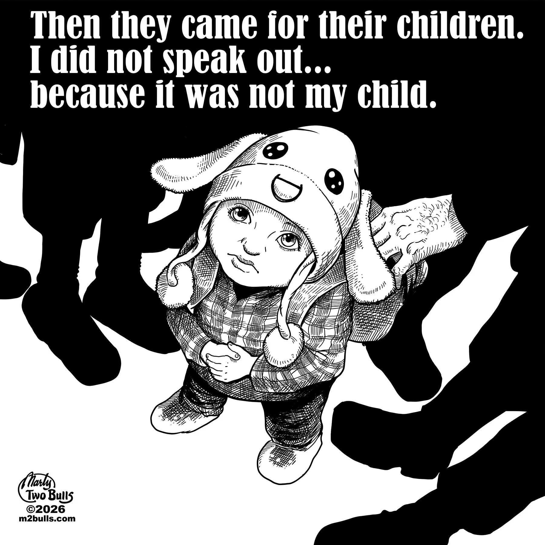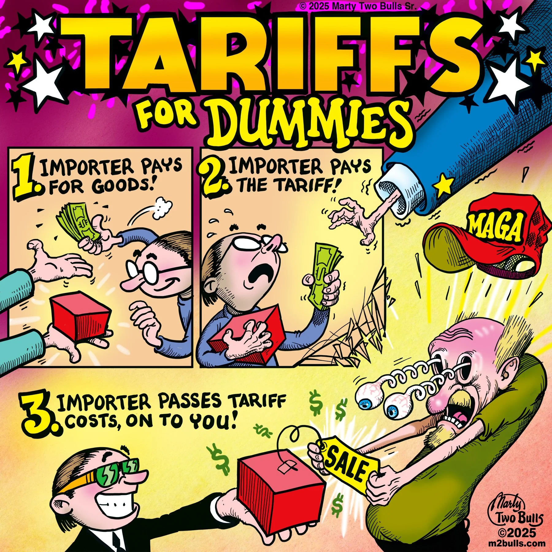 Marty Two Bulls is an artist, graphic designer and award-winning political cartoonist. He works and studies in Santa Fe, New Mexico. His website is m2bulls.com.